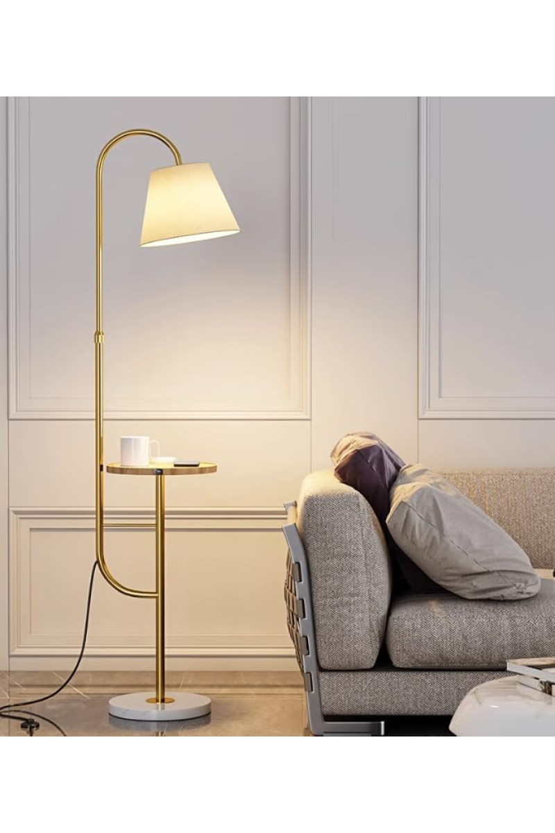 Торшер напольный со столиком SVLIGHT 110061. Торшер идеальнее подойдет для спальни, гостиной или зала. Торшер достаточно устойчив, так как имеет круглую подставку. Сама конструкция состоит из металла, деревянного столика и абажура. Патрон у торшера Е27, лампочка светодиодная подойдет любой мощности, выключатель на шнуре кнопочный.